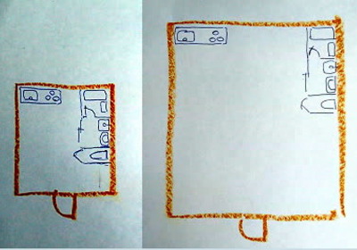 また、直方体の家と、一部凹型にした家を考えてみましょう。