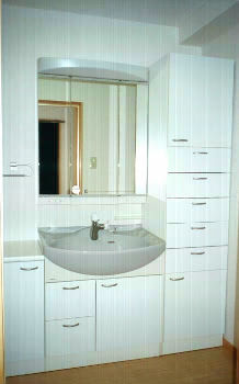 もともとの洗面がまだ使えそうなので、品番を調べて、両脇の収納を増設しました。 化粧台の費用で収納が増え、廃棄処分代も不要になるので一石二鳥です。