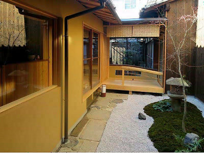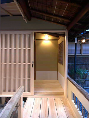 母屋の中を通り抜けた先にある渡廊下がゲストハウスの入口になります。